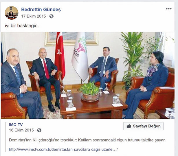 2014 yerel seçimlerinde Mersin BDP Toroslar Belediyesi Eş Başkan adayı olan Bedrettin Gündeş’in sosyal medya hesabından “Terör örgütü propagandası yapmak" suçundan cezaevinde olan eski HDP Eş Genel Başkanı Selahattin Demirtaş’ı öven propaganda mesajları paylaşması dikkat çekti. BDP tarafından düzenlenen mitinglerde de Gündeş boy gösterdi. Terör örgütü paçavralarının ve teröristbaşı Abdullah Öcalan’ın posterlerinin yer aldığı mitinglere katılan Gündeş, burada fotoğraf çekilmeyi de ihmal etmedi.