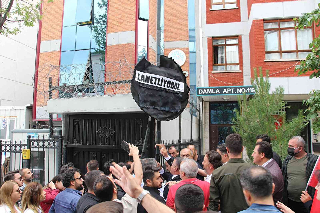 Şehit aileleri ve gaziler, İstanbul Kadıköy’de gösteri esnasında polise yumruk atan HDP milletvekili Saliha Aydemir’i protesto etmek için HDP Genel Merkezi önüne siyah çelenk bıraktı.