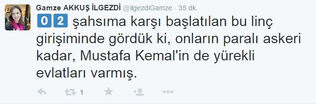 de bugün iddialara cevap vermek için twitter hesabı açtı. "Şahsıma yapılan bu linç girişimi gösterdi ki Mustafa Kemal'in yürekli askerleri varmış." yazan İlgezdi'nin twetleri şöyle;