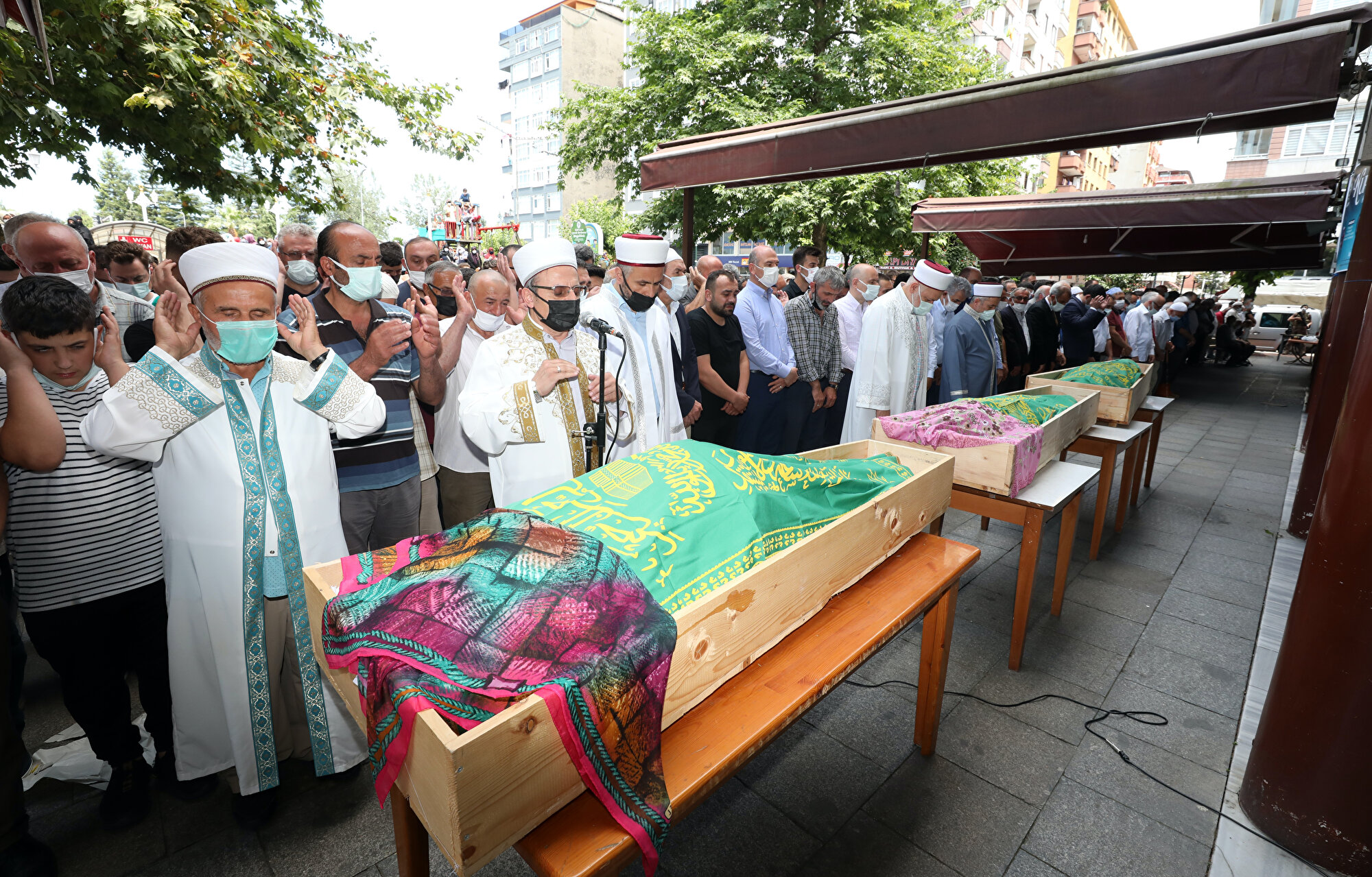 Rize’nin Güneysu ilçesi ile Muradiye beldesinde yaşanan sel ve heyelanlarda hayatını kaybedenlerden beşi bugün cuma namazı sonrasında kılınan cenaze namazlarının ardından son yolculuklarına uğurlandı. Cenaze namazlarına İçişleri Bakanı Süleyman Soylu, Ulaştırma ve Altyapı Bakanı Adil Karaismailoğlu ve Çevre ve Şehircilik Bakanı Murat Kurum da katıldı.