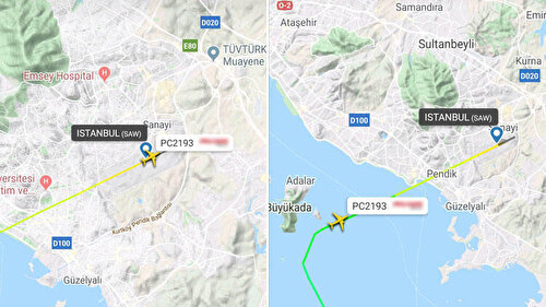 - Görüntülerde, 17.23’te İzmir’den havalanan uçağın 56 dakikalık uçuş süresinin ardından saat 18.19’da Sabiha Gökçen Havalimanı'na teker koyduğu görülüyor.
