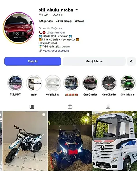 D.C., çocukları için Instagram üzerinden akülü araç almak isterken “stil_akulu_araba” adlı sayfayla iletişime geçti. Sayfanın 73 bini aşkın takipçisinin olması ve “Hasan Türker” adına düzenlenmiş vergi levhasının sabitlenen hikayelerde yer alması, D.C’nin güvenini kazandı.