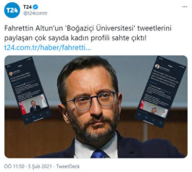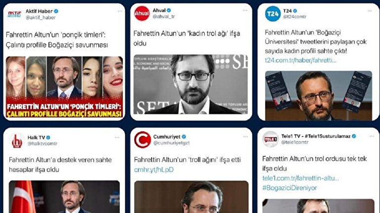 Haberlerde, Cumhurbaşkanlığı İletişim Başkanı Fahrettin Altun'un Twitter hesabından paylaştığı "Boğaziçi’nde neler oluyor?" adlı videonun, yine Altun tarafından kurulan sahte hesaplarla yayılmaya çalışıldığı iddia edildi.