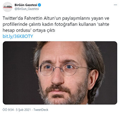 Altun’un hedef gösterilmesinin ardından FETÖ’ye ait Aktif Haber ve AHVAL gibi sitelerde yayımlanan haberler, Cumhuriyet, T24, Birgün gibi operasyon medyasında da birebir kelimelerle kendine yer buldu. Sahte hesapların, algı operasyonunun ardından kapatıldığı belirlendi.