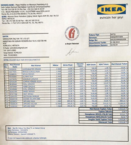 Köleoğlu’nun bebek şampuanından, renkli şortta kadar aldığı her ürünü Kumluca Belediyesinin iştiraki olan Sarnıçtepe İnşaat Enerji Turizm Limited Şirketi’ne fatura ettiği öne sürülüyor.