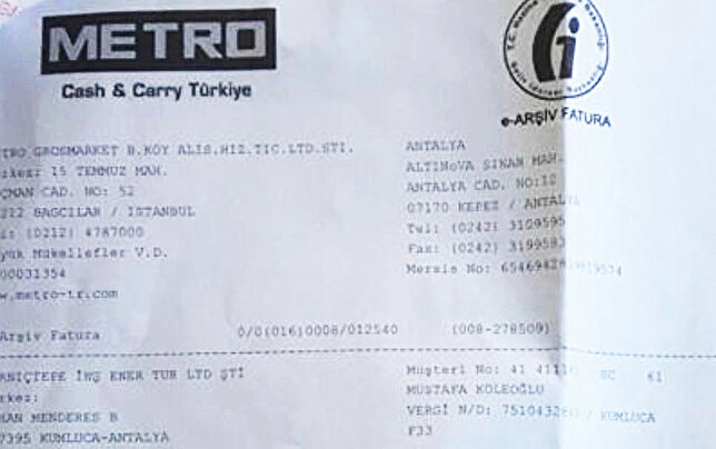 - Yeni Şafak’ın ulaştığı belgelere göre, Alman sermayeli Metro Gross Market’in Konyaaltı Şubesi’nden Başkan Mustafa Köleoğlu’nun müşteri kartı kullanılarak defalarca alışveriş yapıldı.Ancak bu alışverişler Köleoğlu’nun kendisi yerine Kumluca Belediyesi şirketi olan ve daha önce işçi kıyımı ile gündeme gelen Sarnıçtepe İnşaat Enerji Turizm Limited Şirketi’ne fatura edildi.Beş bin TL ile bin TL arası değişen faturalardaki bedeller de çoğunlukla bir şirket yetkilisinin kullandığı kredi kartıyla ödendi.