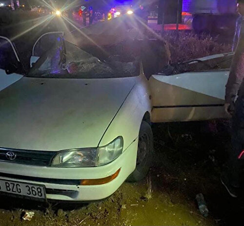 Çarpışmanın şiddetiyle otomobilin tavanı koparken, kazayı görenlerin ihbarı üzerine olay yerine jandarma ve sağlık ekipleri sevk edildi.