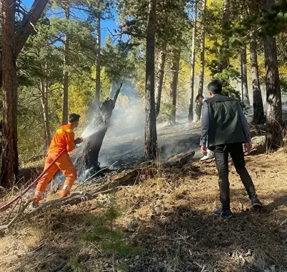 Kars'ın Sarıkamış ilçesinde ormanda çıkan örtü yangını söndürüldü, yaklaşık 1 hektar alan zarar gördü.
