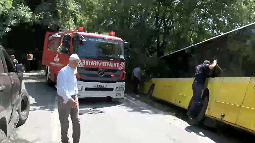 Sarıyer’de zincirleme kazaya karışan İETT otobüsü yol kenarındaki toprak alana girdi. Kazada 6 kişi yaralandı. Araçta sıkışan İETT otobüsü şoförü, itfaiye ekiplerince kurtarıldı.