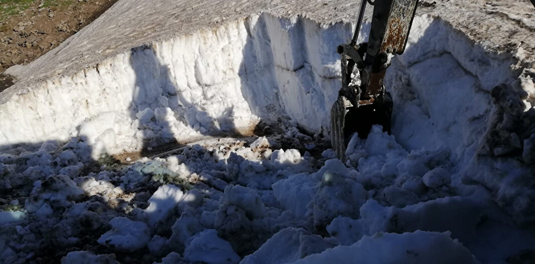 Ekipler, yaylalarda henüz çözülmeyen kar birikintilerini temizlemek için çalışma yapıyor.