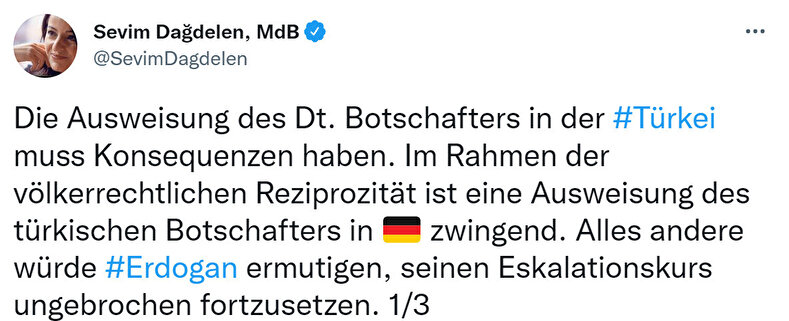 Almanya'da Türkiye aleyhine faaliyet gösteren Türk asıllı milletvekilleri, Sevim Dağdelen ve Cem Özdemir de Osman Kavala'ya siper oldu. 10 büyükelçinin Türk yargısını hedef alan açıklamasına destek veren isimler, Türkiye'ye karşılık verilmesi gerektiğini savundu.
