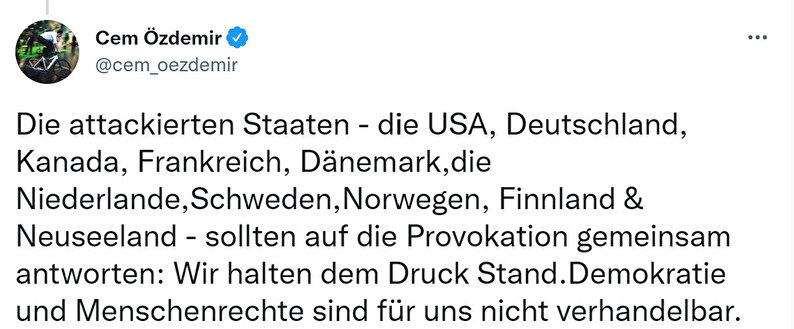 Almanya'da Türkiye karşıtlığıyla bilinen Yeşiller milletvekili Cem Özdemir de konuyla ilgili bir açıklamada bulundu.