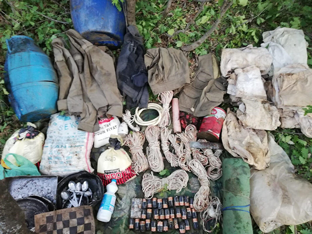 2x3 metre ebatlarındaki sığınakta, 500 metre elektrik kablosu, 36 pil, 4 jelikan bidon, 1 termal dürbün çantası, 3 leşker kıyafeti, 5 takım kar elbisesi, 1 mat, 2 testere, 1 ampul, 100 kilo ağırlığında çeşitli gıda malzemeleri ve muhtelif miktarda yaşam malzemesi ele geçirildi.