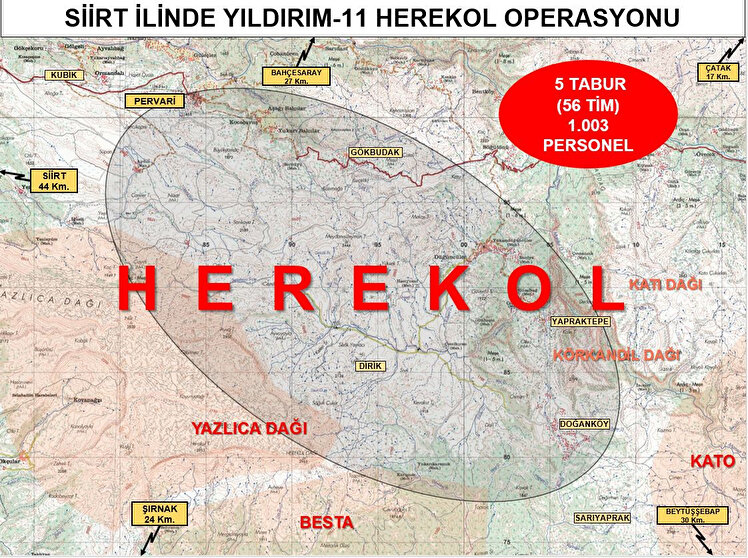 İçişleri Bakanlığından yapılan açıklamaya göre, bölücü terör örgütünü tamamen ülke gündeminden çıkarmak ve bölgede barındığı değerlendirilen teröristleri etkisiz hale getirmek amacıyla Siirt İl Jandarma Komutanlığınca 'Yıldırım-11 Herekol' operasyonu başlatıldı.