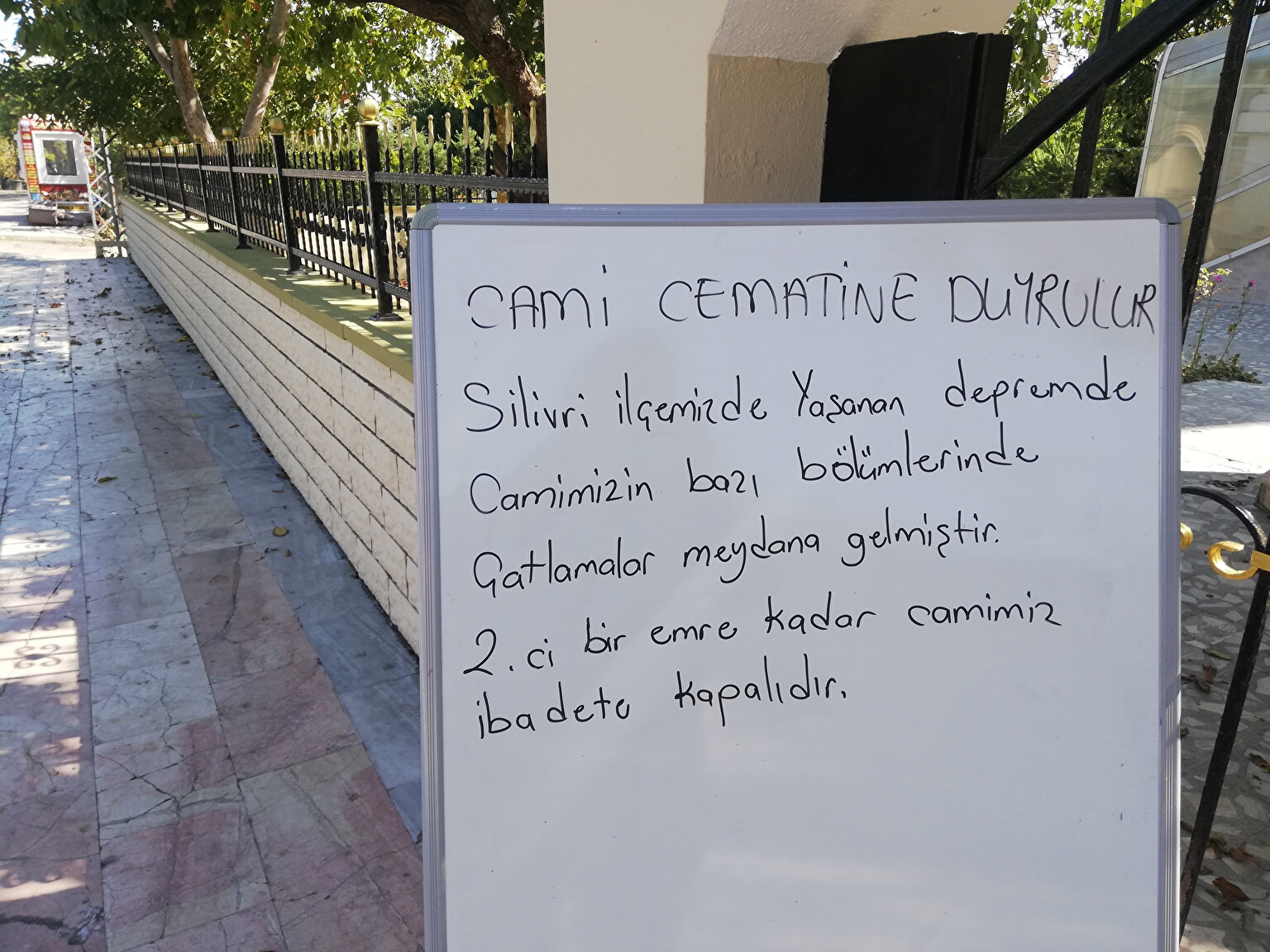 İstanbul'da dün meydana gelen 5.8 şiddetindeki depremin ardından Silivri'de bir bina ile cami belediye ekipleri tarafından yapılan incelemelerin ardından mühürlendi. Mühürlenen yapılarda detaylı incelemenin yapılacağı öğrenildi.