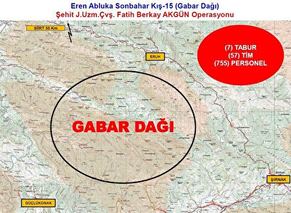 PKK terör örgütünü ülke gündeminden çıkarmak ve bölgede barındığı değerlendirilen teröristleri etkisiz hale getirmek maksadıyla Şırnak ve Siirt illerinde “Eren Abluka Sonbahar-Kış-15 (Gabar Dağı) Şehit J.Uzm.Çvş. Fatih Berkay Akgün” Operasyonu başlatıldı.