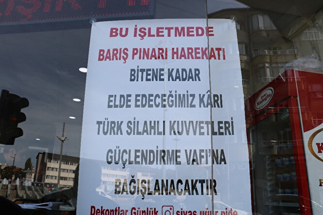 Sivas kent merkezinde hizmet veren pide fırını, Pınar Başı harekatında mücadele eden Mehmetçiğe destek verme kararı aldı. Fırın sahibi Cemil Yıldırım, Barış Pınarı Harekatı boyunca elde edeceği karı Türk Silahlı Kuvvetleri Güçlendirme Vakfına bağışlayacak.