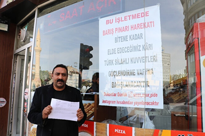 Sivas’ta pide fırını sahibi Cemil Yıldırım, Barış Pınarı Harekatı boyunca elde edeceği karı Türk Silahlı Kuvvetleri Güçlendirme Vakfına bağışlıyor. Kampanyanın 81 ile yayılmasını istediğini belirten Yıldırım, "Kendi sosyal medya hesaplarımızda günlük yapılan bağışı paylaşacağız. Toplumuzun aklında soru işaretleri kalmaması için dekontları paylaşacağız. Türkiye çapında şuan ilk başlattık. Yoğun bir ilgi var insanlardan" dedi.