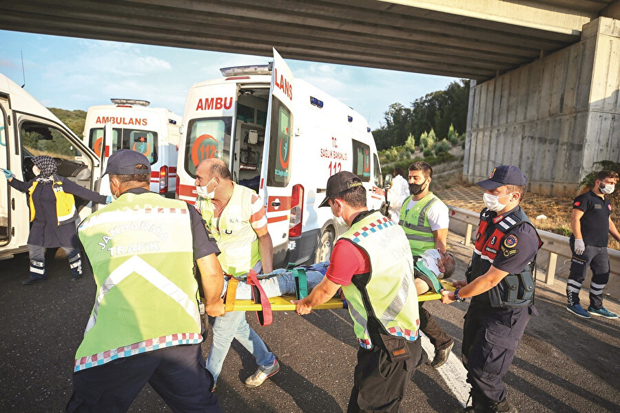 Otobüste eşi, çocukları ve ablasıyla yolculuk eden Cemal Korkmaz, "Geliyorduk. Yaklaşmıştık artık. Bir anda oldu. Ben de uyuyordum. Şoför uyumuş. O an kendimi yerde buldum. Camdan çıkmışım. Hatırlamıyorum ama camdan çıkmışım. Buraya gelişimi hatırlıyorum ambulansa bindirdiler. İlk yardım yaparak getirdiler buraya. Eşim çocuklarım ve ablamlaydık. Ablamdan haber alamadım hala" ifadelerini kullandı.