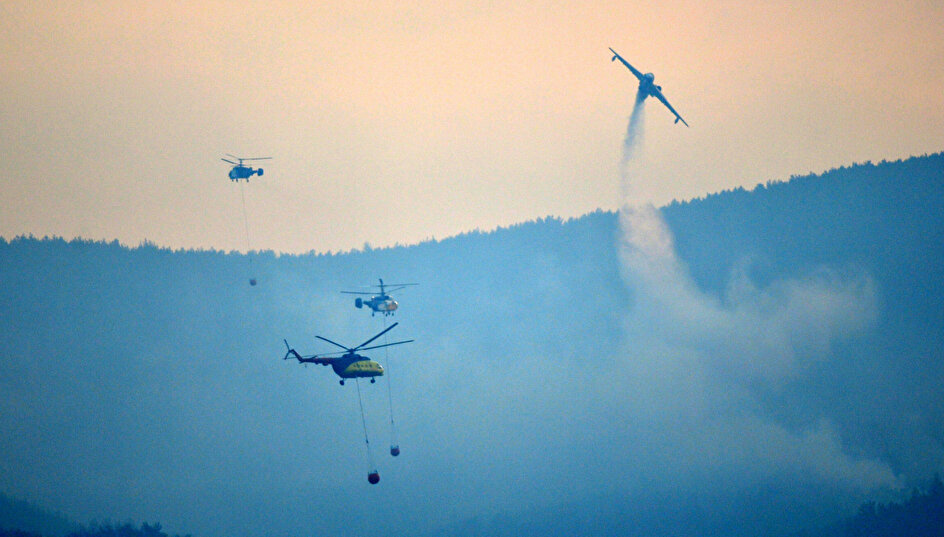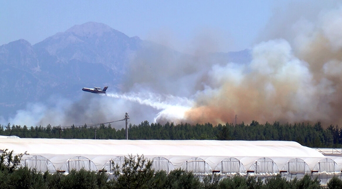 Aksu'daki yangına, söndürme uçakları da müdahale etti.