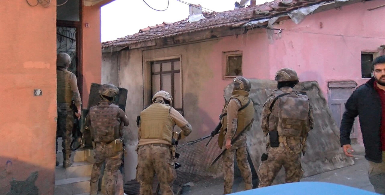 Önceden tespit edilen adreslere giden ekipler, çevrede güvenlik önlemi aldıktan sonra koçbaşı ile kapıları kırarak baskın yaptı.