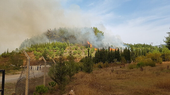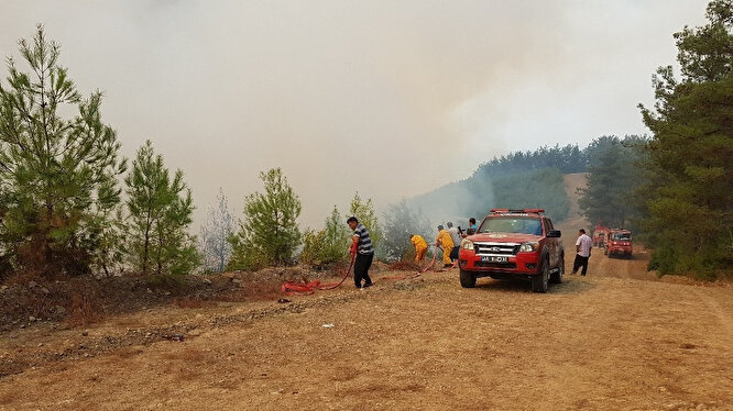 Rüzgarın da etkisiyle kısa sürede büyüyen yangına 20 arazöz, 1 yangın söndürme uçağı ve iş makineleri müdahale ediyor. 4 farklı noktada devam eden orman yangınında şu ana kadar 10 hektarlık ormanlık alanın zarar gördüğü öğrenildi. Öte yandan yangın bölgesine yakın köylerin camilerinden alevlerin ilerlediği yerdeki evlerin boşaltılması ve dikkatli olunmasına dair duyuru yapıldı.