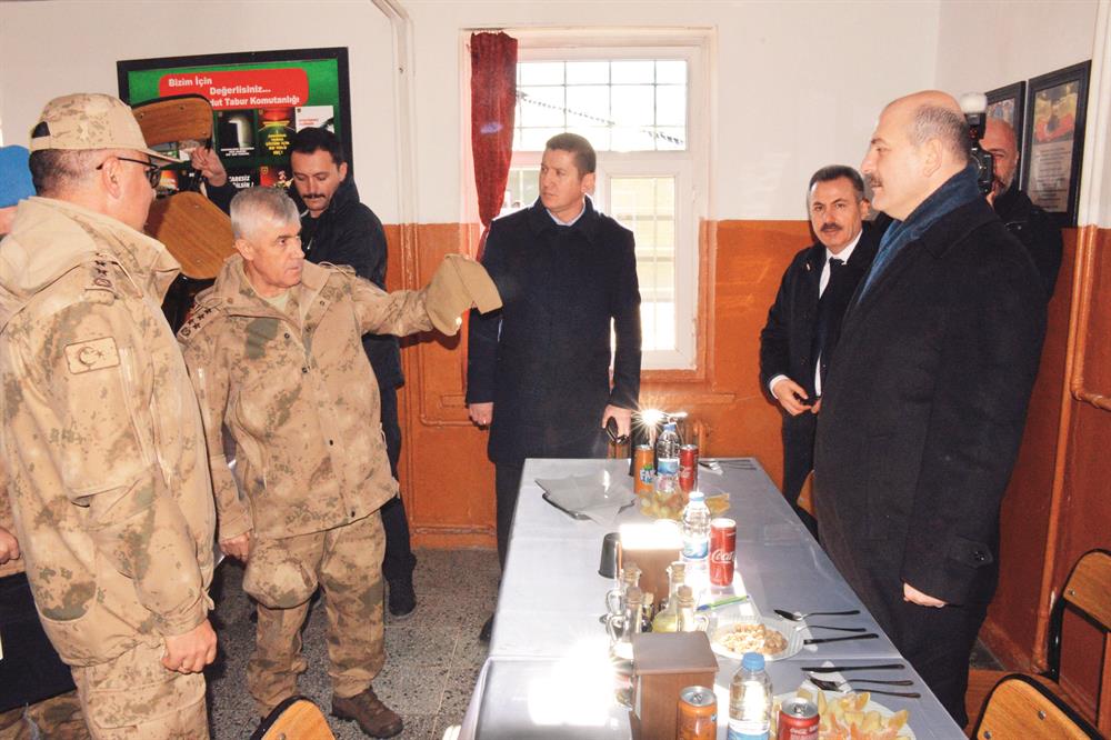 Jandarma Genel Komutanı Orgeneral Arif Çetin ile kente gelen Soylu’yu, Soylu, daha sonra Türkiye-İran sınırındaki Şehit Piyade Çavuş Bekir Kurt Hudut Takım Karakolu’na ziyarette bulundu. Karakol girişinde askeri törenle karşılanan ve şeref defterini imzalayan Soylu, gözetleme kulesine çıkarak sınır hattını inceledi, mehmetçikle çay içip sohbet etti.