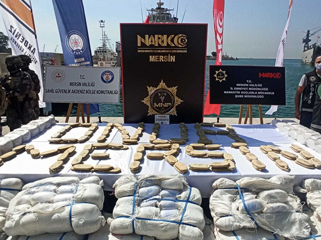 İçişleri Bakanı Süleyman Soylu, dün Suriye açıklarında bir gemiye uyuşturucu operasyonu düzenlendiğini ve 1.5 tonun üzerinde esrar ele geçirildiğini açıklamıştı. Operasyonda ele geçirilen esrar, Mersin’e getirildi.