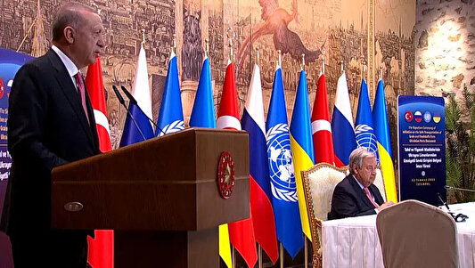 Karadeniz üzerinden dünya pazarlarına tahıl ve diğer gıda ürünlerinin taşınmasına ilişkin anlaşma, Cumhurbaşkanı Recep Tayyip Erdoğan, BM Genel Sekreteri António Guterres, Rus ve Ukrayna heyetlerinin katılımıyla İstanbul Dolmabahçe Sarayı'nda imzalandı.