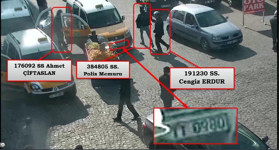 İncelemede olay yerinde bulunan boş kovanlardan 6'sının Yenikapı Sokak'ta yaralanan polis memuru S.T.'ye ait 'Ceska' marka silahtan sıkıldığı belirlendi. Raporda Tahir Elçi'nin vurulduğu sokaktaki boş kovanlardan 4'ünün ise şüphelilerden PKK'lı Uğur Yakışır'ın kaçarken attığı Glock marka silahtan atıldığı tespit edildi. Kriminal raporda, Tahir Elçi'nin vurulduğu sokakta bulunan kovanlardan 2'sinin polis memurları Ahmet Çiftaslan ve Cengiz Erdur'un şehit edildiği yerde ele geçirilen 3 boş kovanla aynı silahtan atıldığının tespit edildiği kaydedildi. Raporda olay yerinde atıldığı silah tespit edilemeyen bir adet kuru sıkı tabancaya ait kovan bulunduğu da kaydedildi.