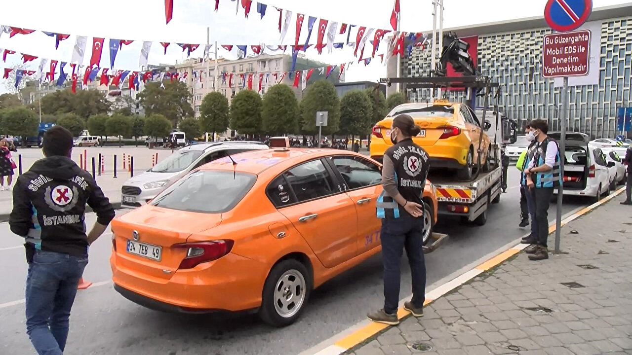 İstanbul Emniyet Müdürlüğü Trafik Denetleme Şube Müdürlüğü'ne bağlı sivil ve resmi ekipler, özellikle vatandaşların ve turistlerin yoğun olduğu Taksim Meydanı'nda denetim yaptı. Tak-ı Zafer Caddesi üzerinde kurulan kontrol noktasında polis ekipleri taksileri durdurup, aracın evrakını ve sürücü belgelerini inceledi.