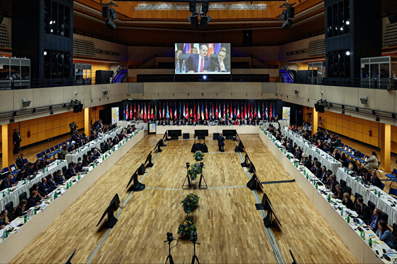 , "Yaşanan insani krizin önlenmesi için çok acil bir şekilde uluslararası sistemin hareket etmesi ve başta hastanelerdeki tıbbi teçhizat, su, ilaç ve gıda almak üzere oradaki masum sivil halka yardım edilmesinin bir insanlık meselesi olduğunu ifade etmek isterim. Son söz olarak şunu söylüyorum, hem Ukrayna krizi hem yaşadığımız diğer bölgesel krizler bize bir şey gösteriyor; uluslararası sistem sorunları çözmekte, çatışmaları önlemekte yetersiz kalmaktadır. Dünyada acilen yeni bir barış mimarisini tesis etmek için, yeni bir küresel siyasal mimariye ihtiyaç olduğunu ifade ediyoruz. Dünya 5 ülkenin insafına bırakılmayacak kadar önemli bir yerdir ve bütün ülkelerin eşit egemenliğini savunan bir dünya sisteminin kurulmasını da zaruri görüyoruz"