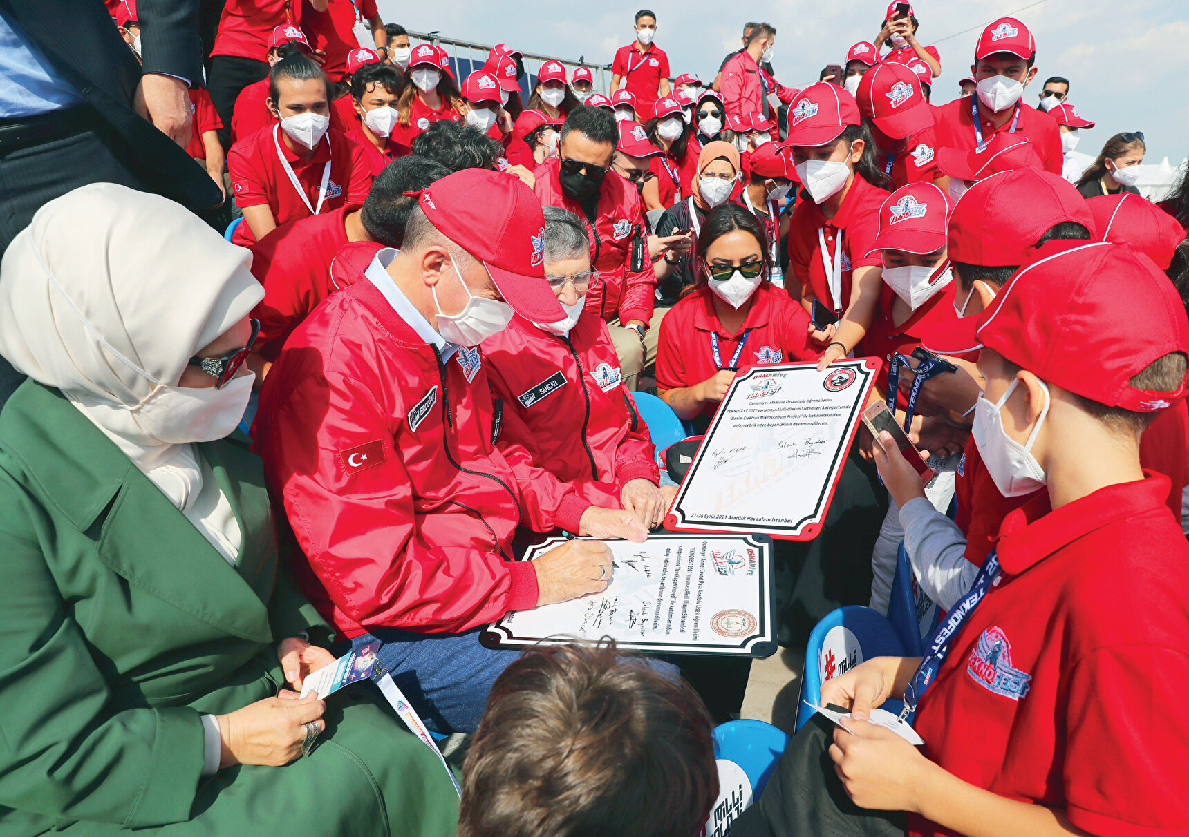 Farklı kurum ve kuruluşların, sivil toplum örgütlerinin, özel sektör firmalarının milli teknoloji hamlesinin nişanesi olan TEKNOFEST için tam anlamıyla seferber olduğunu dile getiren Erdoğan, burada 7’den 70’e tüm katılımcıların, özellikle kendilerine hitap eden eşsiz bir teknoloji ziyafeti olduğunu belirtti.