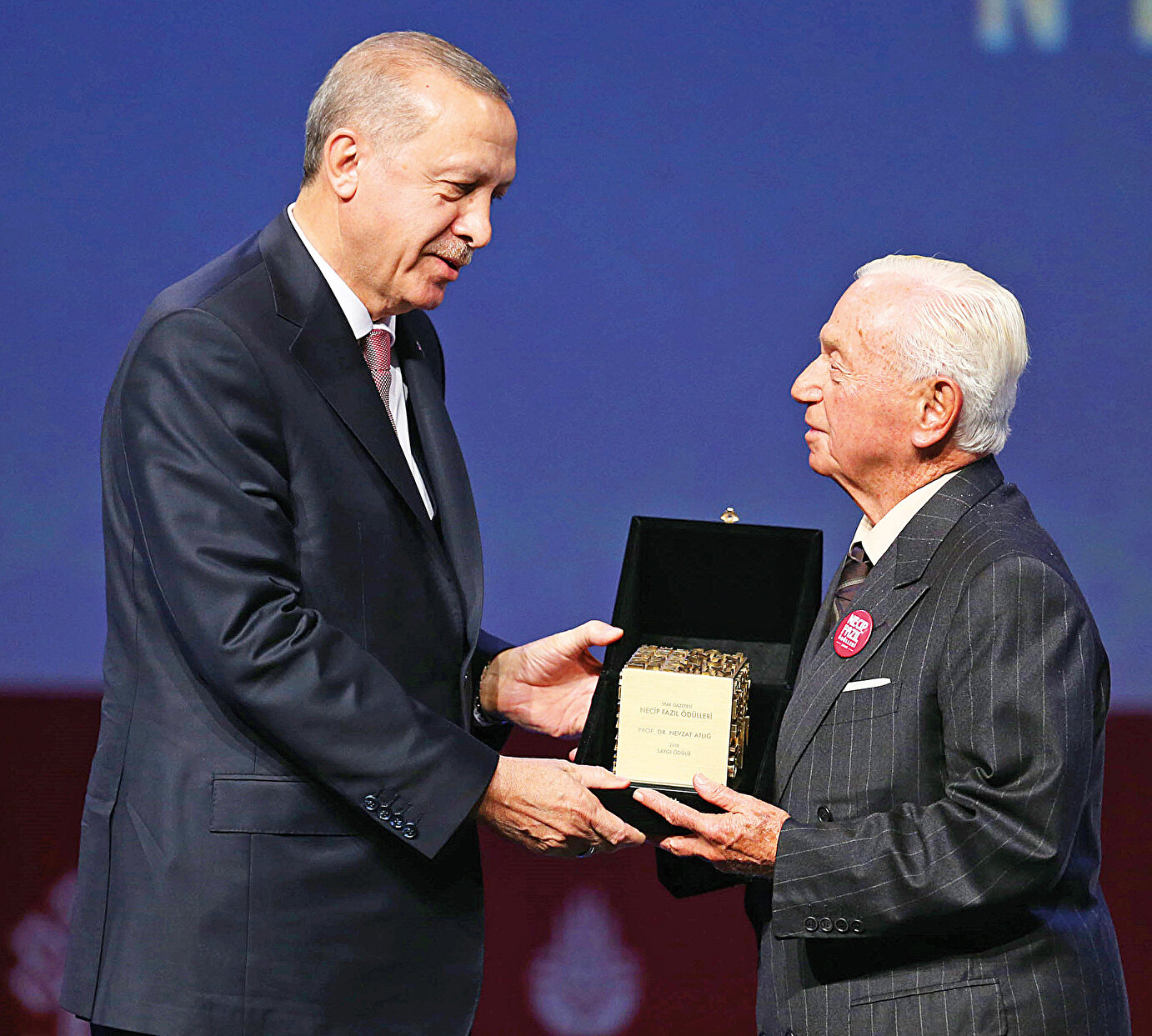 Cumhurbaşkanı Recep Tayyip Erdoğan, Lütfi Kırdar Kongre ve Sergi Sarayı’nda gerçekleştirilen “Necip Fazıl Ödülleri” törenine katıldı. Törende Necip Fazıl Saygı Ödülü’nü Nevzat Atlığ, Cumhurbaşkanı Recep Tayyip Erdoğan’ın elinden alırken, diğer ödül alan isimler ise şöyle: Şiir Ödülü Arif Ay, Hikaye Roman Ödülü Aykut Ertuğrul, Fikir Araştırıma ödülü Ahmet Yaşar Ocak, Uluslararası Kültür Sanat ödülü Muhammed Harb, İlk eserler ödülü Fatih Baha Aydın ve Yasemin Karahüseyin.