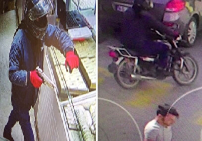 Motosikletli şahıs elinde bomba süsü verilmiş paketi masaya bırakarak elindeki tabancayı kuyumcuya doğrultarak altınları vermesini istedi. Yaşanan panik sırasında kuyumcu vitrinindeki iki sıra bileziği alan kasklı hırsız, geldiği motosikletle olay yerinden hızla uzaklaştı.