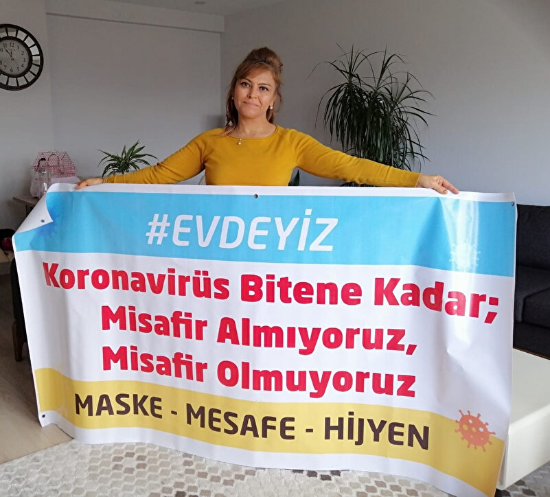 Tuna şöyle devam etti: "Herkes pandemi gönüllüsü olmalı. Sayın Sağlık Bakanımız konuşmasında kişisel tedbirlerin öneminin üzerinde durdu ve misafir alınmamasını tavsiye etti. Ben de bu yazıyı evimin camına asıyorum."