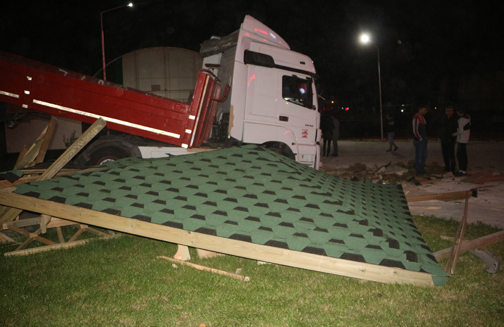 Tokat'ta, park halindeyken hareketlenen TIR, bölgede bulunan bir spor tesisinin bahçesindeki istinat duvarını aşıp, kameriyenin üzerine düştü. O sırada kameriyede oturan üç genç ise kazadan yara almadan son anda kurtuldu.