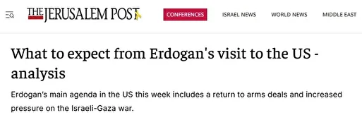 Jerusalem Post, Erdoğan’ın ABD ziyaretindeki ana gündem maddelerinin F-16 ile F-35 anlaşmalarına dönüş ve İsrail’e Gazze konusunda baskıyı artırmak olduğunu duyurdu. Haberde, geçmişte de samimi ilişkisi olan iki liderin buluşmasının bölge açısından kritik olduğu ifade edildi.