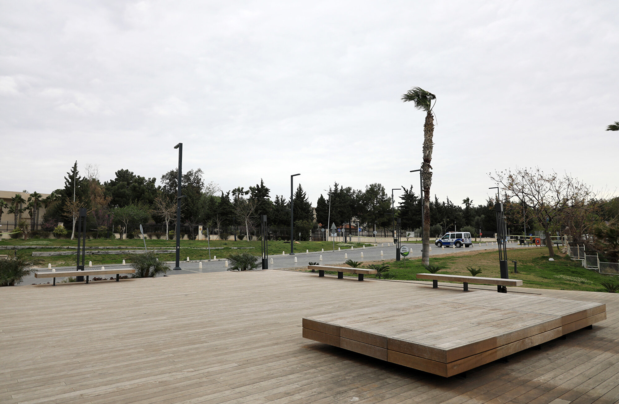Ayrıca banklara güvenlik şeridi çekilerek oturulmasının önüne geçildi. Yasağa uymayanları uyarmak için polis ekipleri nöbet tuttu.