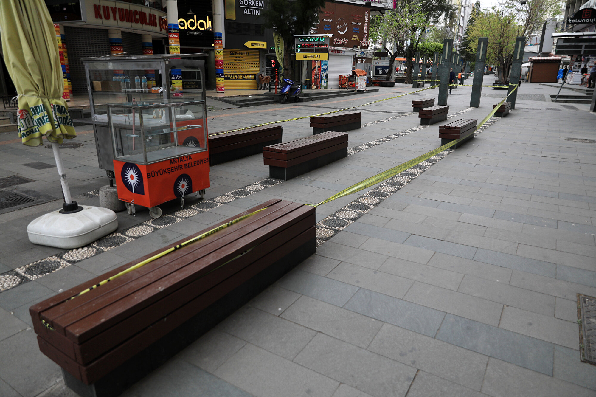 Yasak öncesinde kışın en soğuk günlerde dahi kalabalık görüntüsüyle dikkati çeken dünyaca ünlü Konyaaltı Sahili'ne giden tüm yollar ve sahil bandının tamamı yaya ve araç trafiğine kapatıldı. Yol güzergahını güvenlik şeridiyle kapatan polis, ekip araçları içerisinde gün boyu nöbet tutuyor. Benzer manzara kentin en büyük meydanı olan Cumhuriyet Meydanı'nda da görüldü. Meydanda nöbet tutan polis memuru, fotoğraf çeken bir çifti evlerine gitmeleri yönünde uyarıp alandan uzaklaştırdı.