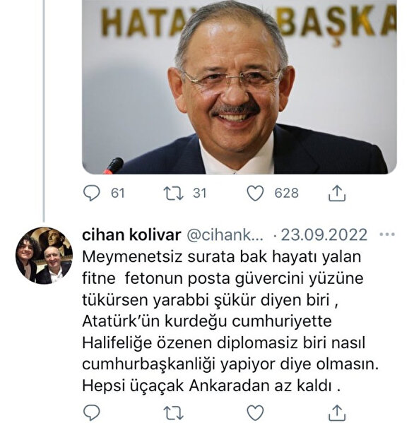 Ekmeğin aptal toplumların temel gıda maddesi olduğunu ileri süren Kolivar'ın sosyal medya hesabından AK Parti seçmenine karşı aşağılayıcı ifadeler kullandığı ortaya çıktı. Kolivar'ın CHP'li isimlerin tweetlerini paylaştığı görüldü.