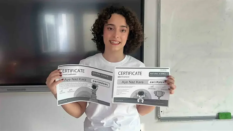Hatay’ın Dörtyol ilçesinde yaşayan 17 yaşındaki Ayşe Naz Kara, Türkiye Milli Takımı ile 2-9 Ağustos tarihleri arasında Çin’in Pekin kentinde 54 ülkeden 50 bin öğrencinin katılımıyla düzenlenen Uluslararası Copernicus Bilim Olimpiyatı’nda soruların hepsini bilerek tam puan almayı başardı. Elde ettiği başarıyla 2026 yılının Ocak ayında ABD’de NASA’da ve Rice Üniversitesi’nde gerçekleşecek finallere katılacak olan ve profesörlerden ders olacak olan Kara, Milli Eğitim Bakanlığı müfredatının çok ötesinde içeriklere yoğunlaşarak, büyük bir emek vererek başarı elde etti.