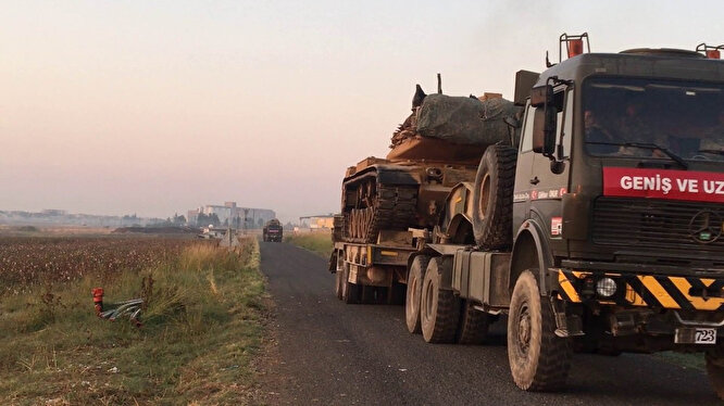 Mardin’den ilerleyen tank yüklü araçlar, sınırın sıfır noktasında bulunan Kızıltepe ilçesi Şenyurt Mahallesi’ne doğru hareket etti.