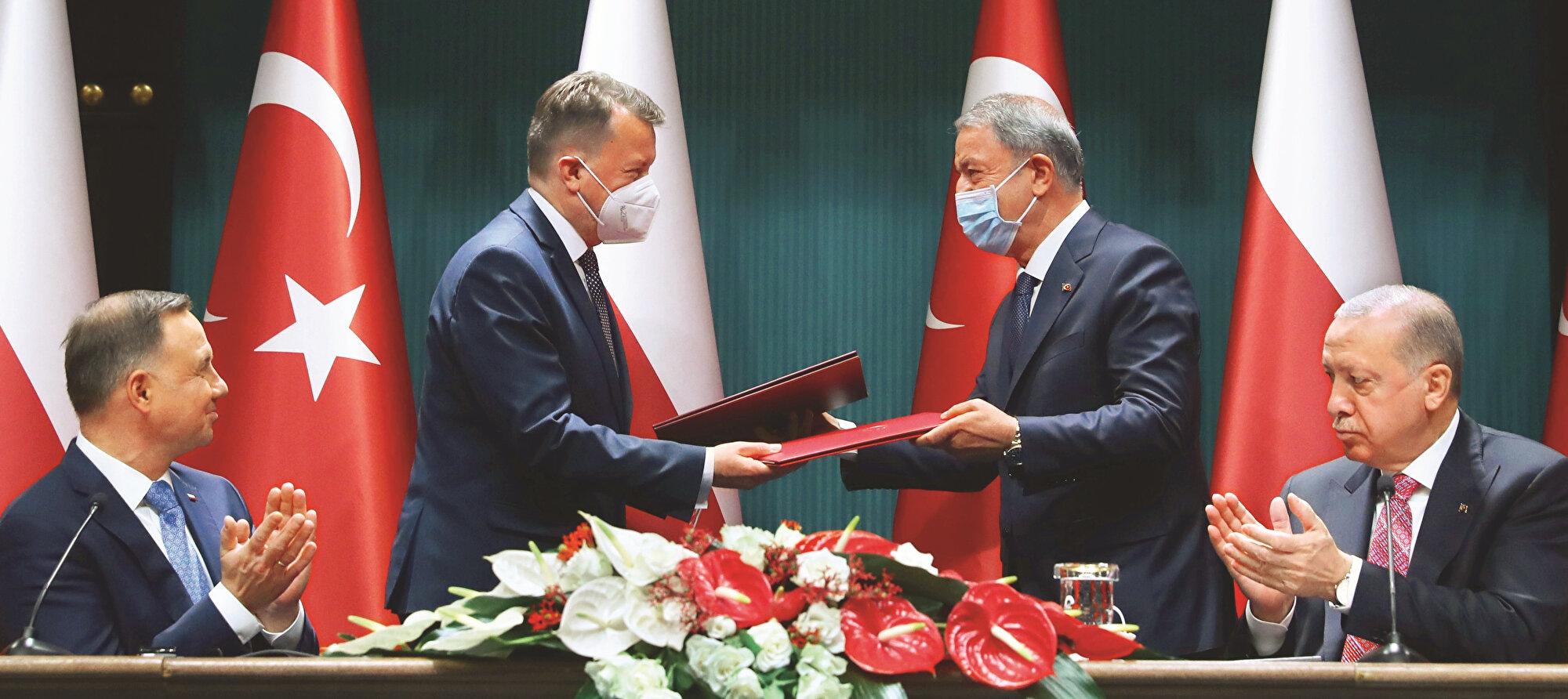 - Polonya Cumhurbaşkanı Duda,“Çift taraflı anlaşmaların imzalanması çok önemlidir. Bu sözleşmeler gizli bilgiler, milli savunmada kullanılmasında, aynı zamanda milli savunmada kullanılan silahların satın alınmasında. Bence en önemlisi kesinlikle turizm alanında imzaladığımız sözleşmedir. Polonya’da bir sürü insan bir tatili hayal ediyor. 2020 yılında pandemiden dolayı tatillerini ertelediler. Bu sözleşme ile bu sene bu gerçekleşecek”dedi. Polonya’da Türk askerlerinin bulunmasından duyduğu memnuniyeti belirten Duda,“Türk pilotları gökyüzümüzü koruduğu için Cumhurbaşkanı Erdoğan’a teşekkür ettim. NATO çerçevesinde, iki ülkeye ülke içinden ve dışından gelebilecek tehditleri önleyebileceğimize inanıyorum. Türkiye dünyanın bu bölgesinde bizim en sağlam müttefikimizdir”diye konuştu.