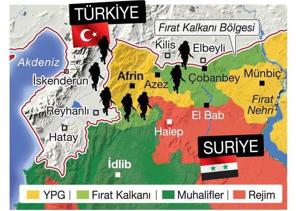 Türkiye’nin 2017 yılı içinde 3 kez Afrin’e operasyon gerçekleştirmeyi planlarken teknik hazırlıkların tamamlanmasına rağmen diplomatik kanallardan beklenen olumlu sonuçlar alınamadığı için operasyonu askıya aldığı belirtildi. Bölgede bulunan Türk Silahlı Kuvvetleri’nin ise fiziki istihbarat ve havadan sağladığı görüntülü istihbarat bilgilerini örtüştürmek üzere özel operasyon merkezi ile bölgedeki gelişmeleri son 45 günden bu yana dikkatle izlendiği öğrenildi.