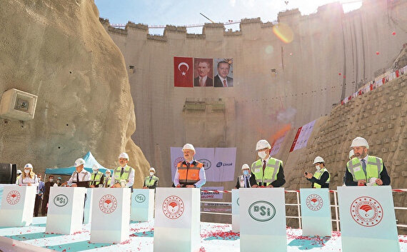 Yusufeli Barajı’nda 3 milyonuncu metreküp betonun dökümü için düzenlenen törene katılan Tarım ve Orman Bakanı Bekir Pakdemirli ile Ulaştırma ve Altyapı Bakanı Adil Karaismaoğlu, Türkiye’nin aldığı önlemlerle koronavirüs salgınından diğer ülkeler göre daha hızlı çıkacağını vurguladı.