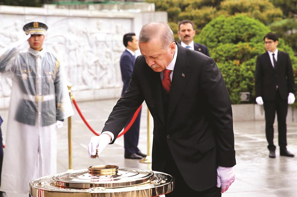 Cumhurbaşkanı Erdoğan, Güney Kore Devlet Başkanı Moon Jae-in ile temasları sonrasında Cumhurbaşkanlığı Sarayı’ndan Ulusal Mezarlık’a gitti. Mezarlığa çelenk bırakan Cumhurbaşkanı Erdoğan, ardından tütsü yaktı ve ölenler anısına saygı duruşunda bulundu. Törende, Cumhurbaşkanı Erdoğan ve beraberindeki Güney Koreli heyet de beyaz eldiven taktı. Erdoğan, anı defterini imzalayarak Ulusal Mezarlık’tan ayrıldı.