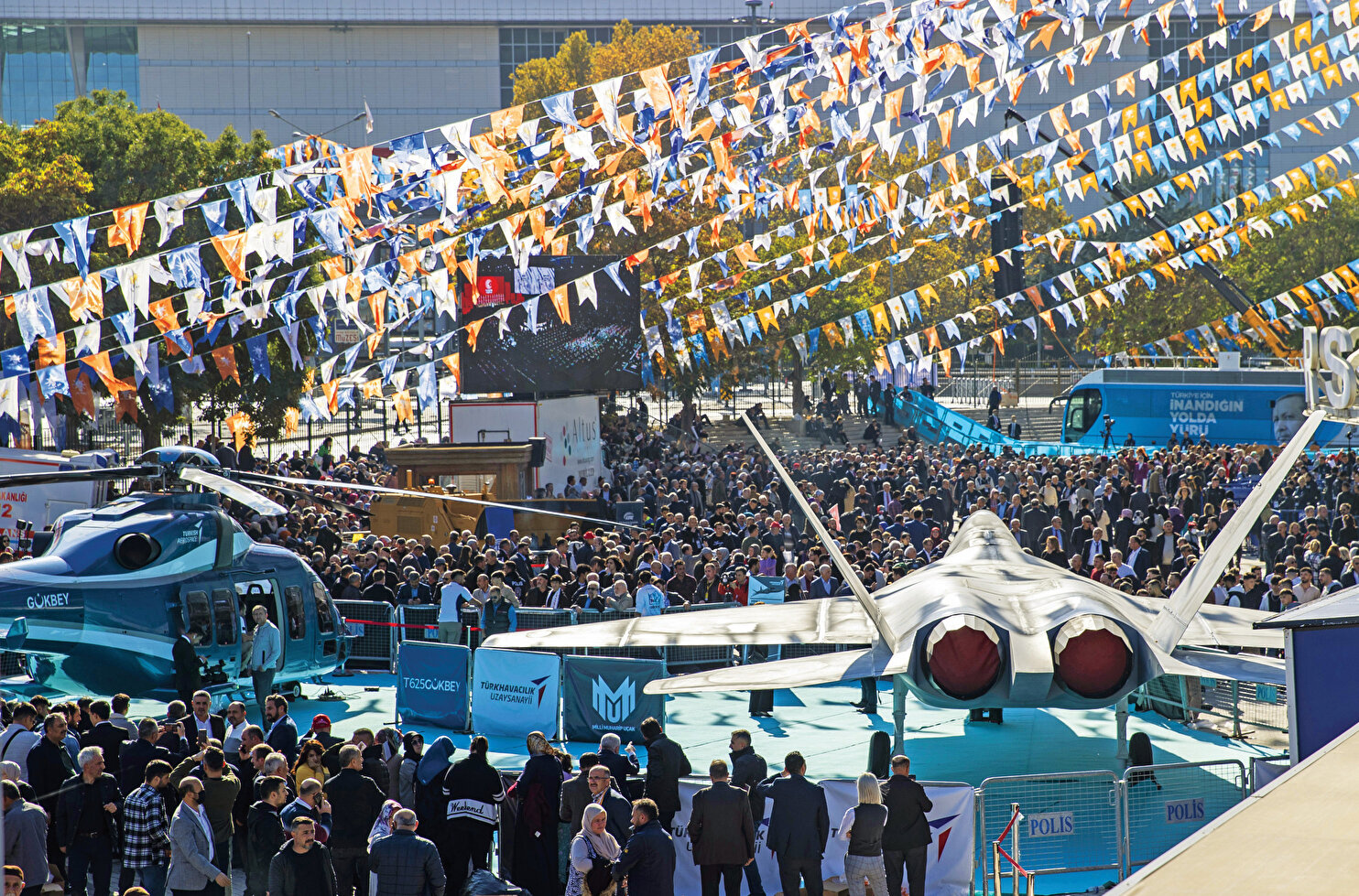 Ankara Spor Salonu’nun dışında üretilen milli savunma sanayi ürünleri sergilendi. Sergilenen ürünler arasında Bayraktar Kızılelma, Gökbey Helikopteri, Milli Muharip Uçak da yer aldı. Kurulan stantlarda yer alan yerli üretim silahlara vatandaşlar büyük ilgi gösterdi.