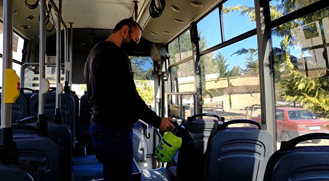 Kent genelinde bulunan tüm ticari taksilerle birlikte tüm ulaşım araçlarına el tipi küçük ilaçlama pompası dağıtıldığını ve limitsiz dezenfektan verildiğini belirtti.