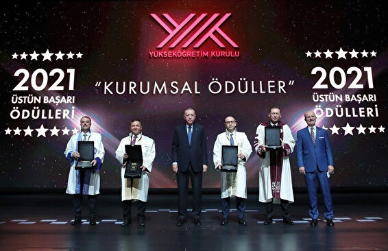 Düzenlenen törende, Cumhurbaşkanı Recep Tayyip Erdoğan ve YÖK Başkanı Prof. Dr. Erol Özvar’ın konuşmalarının ardından Yükseköğretim Kurulu Üstün Başarı Ödülleri verildi. Yükseköğretim Kurulu Üstün Başarı Ödülleri kapsamında ERÜ COVID-19’a karşı inaktif aşının geliştirilmesi ve insan faz çalışmalarının yürütülmesi projesi ile 2021 Yılı Topluma Hizmet Ödülü’ne layık görüldü. Ödül, ERÜ Rektörü Prof. Dr. Mustafa Çalış’a Cumhurbaşkanı Recep Tayyip Erdoğan tarafından takdim edildi.